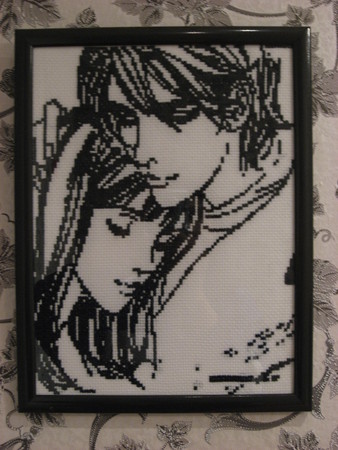 начала вышивать Нежность :) Вышивается довольно легко, но считать приходится много. Ещё вопрос: ты светлый не зашивала?Я решила только чёрный силуэт вышивать без светлого.