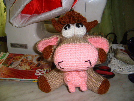 Вчера мне прислали доступ к Сатилине! И вот я связала коровку на которую давно облизывалась - вязала весь день почти, правда - благо Софья была в хорошем настроении :-)))). Вот она, красавица: