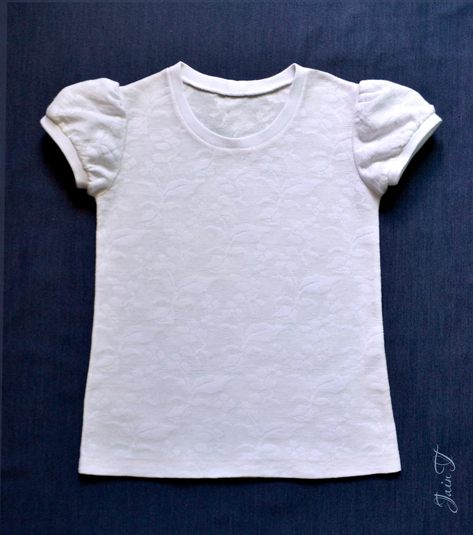 К сарафанчику - футболка из белой компьютерной кулирки х/б.