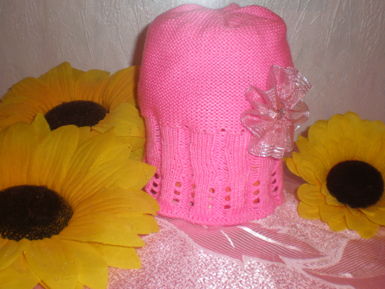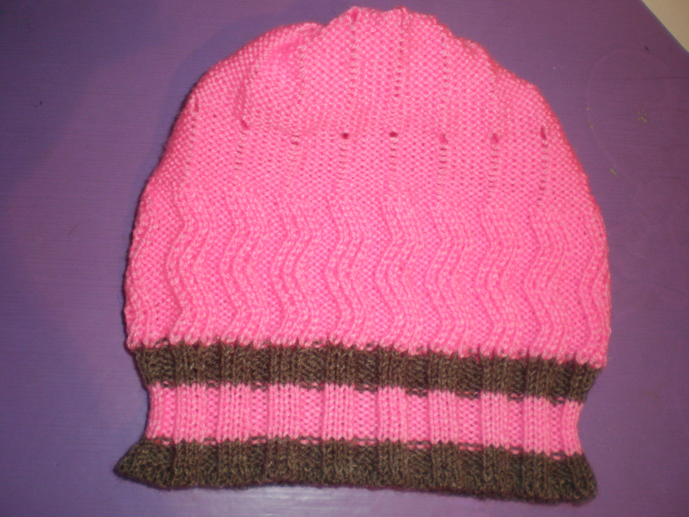на первой шапочке на резинке сделан сдвиг фонтур,получилась эдакая "кривя" резинка,вот только на фото жаль плохо видно.получился интересный изгиб.