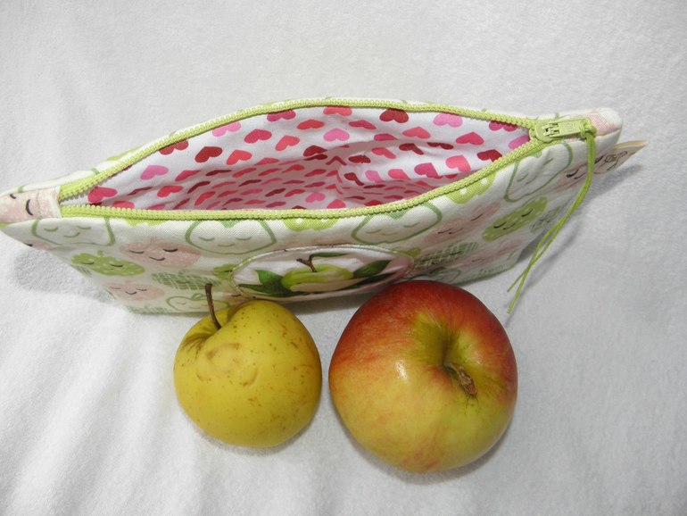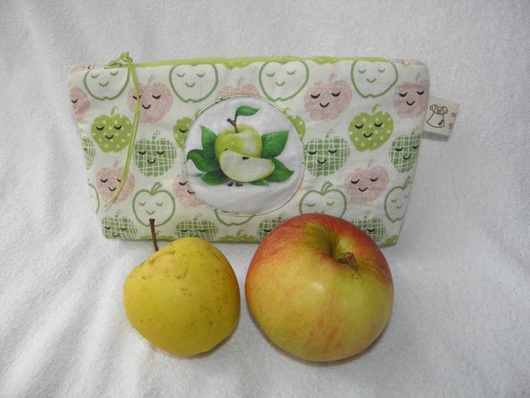 Косметичка "Яблочко".Сшита из корейского хлопка,подклад-корейский хлопок.Размеры-ширина по верху 22см,по дну-19см,высота-12см,ширина дна-3см.