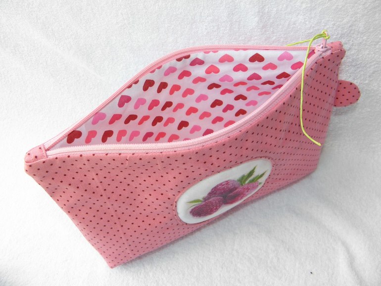 Косметичка "Ягода-малина".Сшита из корейскго хлопка,подклад-корейский хлопок.Размеры-ширина по верху 22см,по дну-19см,высота-12см,ширина дна-3см.