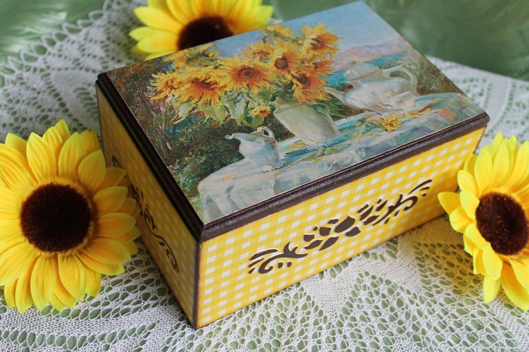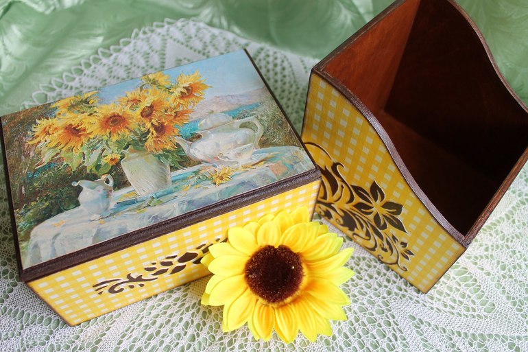 Яночка прислала нам потрясающий набор для кухни: чайную шкатулку и короб для специй.