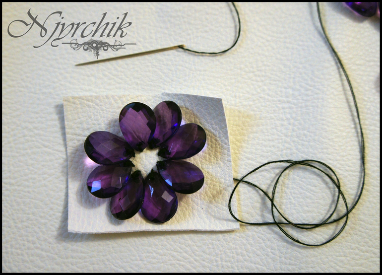 3.Пришиваем по кругу оставшиеся 5 бусин, делая тем самым второй ряд лепесков