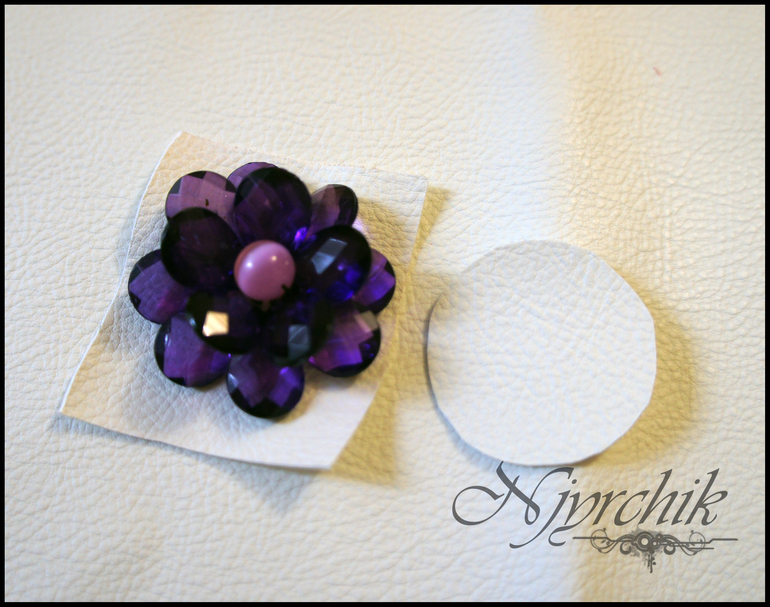 5. Вырезаем из нашей ткани (кзм или того, что вы взяли) кружок диаметром чуть меньшим, чем цветок