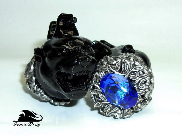 "пантеры"- прессованное дерево твердых пород лакированные, винтаж США (покрытие серебром по латуни), ювелирные камни Сваровски синие