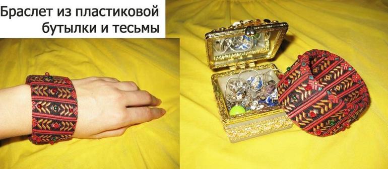 Браслет из пластиковой бутылки и тесьмы. Мастер-класс