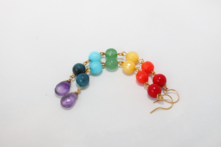 3. Серьги Радуга с миксом камней (коралл, тонированный агат, аметист)