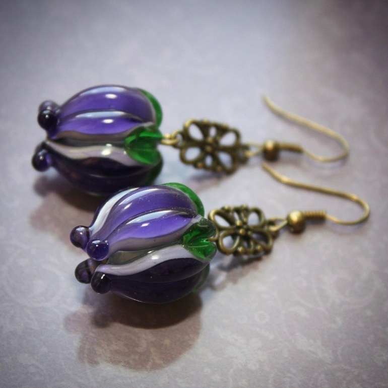2. Серьги с японскими бусинами тенша. Фурнитура с родиевым покрытием
