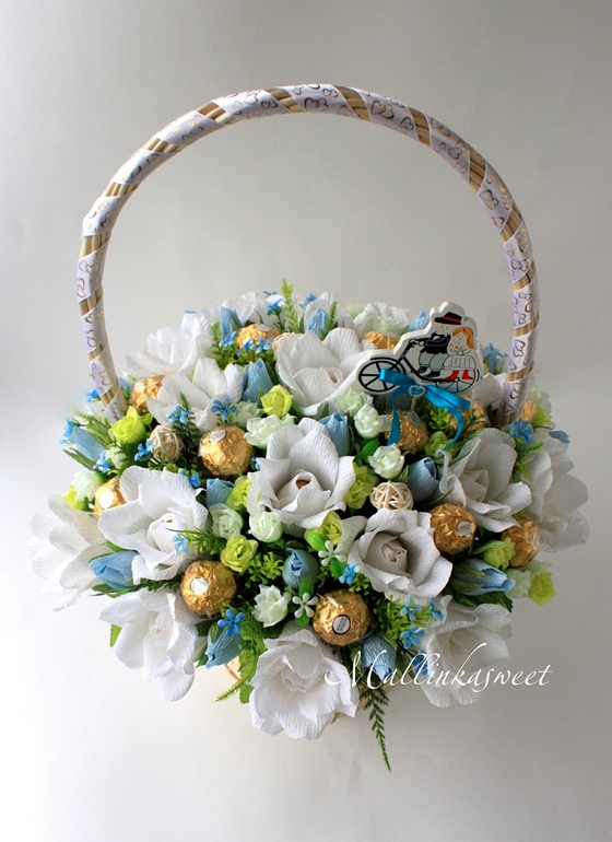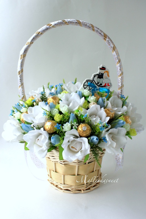 Спасибо Мариш , думала я про декор корзины , все же она высоковата и ленты и бусы приклады вала )))), но остановилась на простых у основания ручки бантиках , их на фото не видно наверное... Мне все не понравилось честно говоря, оставила корзину в покое)))Не видела ее работы в таком цвете, пойду искать... В гугле выдавал из цветов живых и стремные на мой ввззгляд ручные из гофры (((
