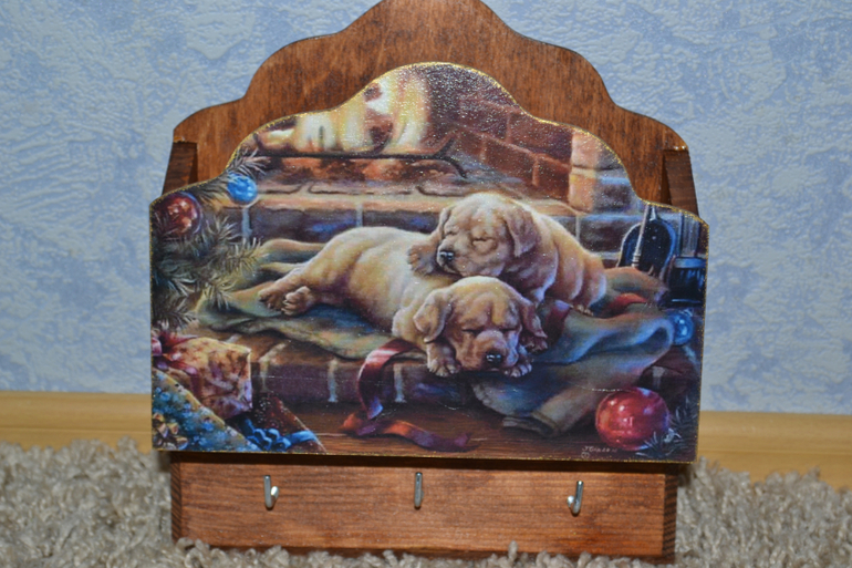 Очень симпатичные щеночки к сожалению не могу предложить блокнот ,но если хотите могу связать шапку любую (машинная вязка) .Хочу ключницу в подарок маме.
