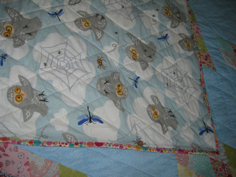 итак, Мария предложила данную схему, далее как обычно схема проработалась в соответствии с имеющимися тканями, докуплено было два цвета. Шила его для старшего сына, а ему хотелось чтоб совята обязательно поселились на одеялке.