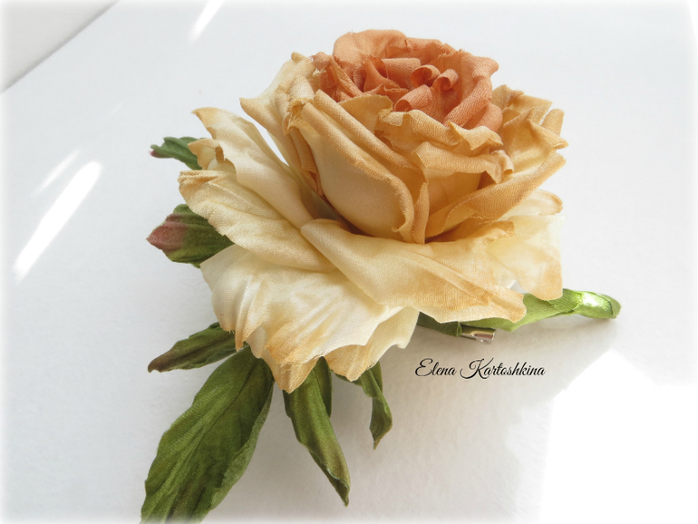 Захотелось мне в холодные денечки согреть себя цветочком,получилась вот такая солнечная и нежная бутонная чайная розочка на ножке.Размер розы в диаметре 9см.