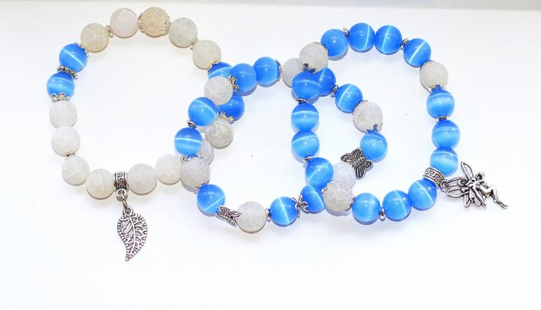Бижутерия для слингомам. Слингобусы. Грызунки.Комплект из кошачьего глаза и агата кракле