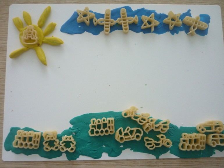 Поделки с детками.только не подумайте что мы варили суп. Мы делали цветную соль и засыпали в баночку. Моему дико понравилось, а потом делали из макарон и пластилина картину (ниже фото) Артем был дико доволен. А вечером мой любимый поросеночек чудил: бабушка принесла чернику настоящую лесную вкуснуюююююющую. Мне много нельзя (я на гв) и я насыпала в тарелочку. прошел час, два, Артем не ест. Предлагаю покушать, на что мне отвечают, что я МАМОЧКА не хочу. Как меня это "МАМОЧКА" насторожила. Попробовала ягодку а там одна соль. Артем перепутал соль с сахаром и насолил!!!