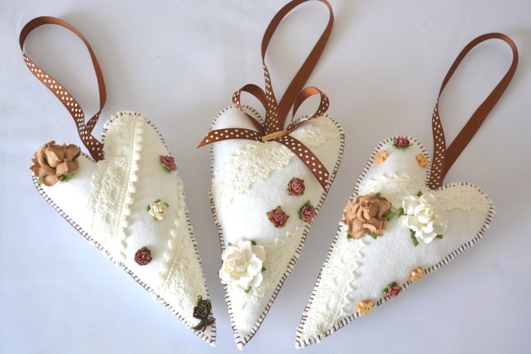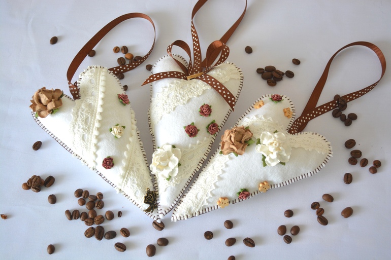 Сердечки из фетра тильда ваниль корица кофе шоколад