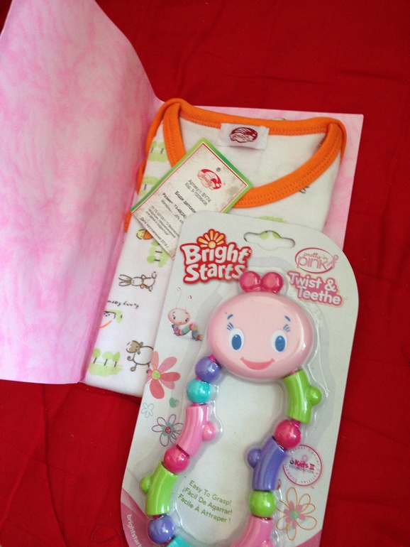 Это Кате боди и грызунок.. грызунок ее что-то не впечатлил, она набросилась на баночки с пластилином, но зато очень понравился Марье ))