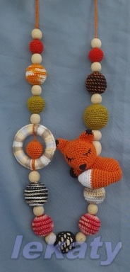Бижутерия для слингомам. Слингобусы. Грызунки.Вот еще одни бусы с лисичкой связала, на заказ. Длина бус 41 см, бусинная часть 29 см. Материалы: 100% хлопок, деревянные бусины и заготовки, наполнитель лисички -холлофайбер