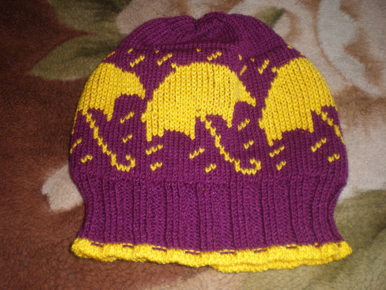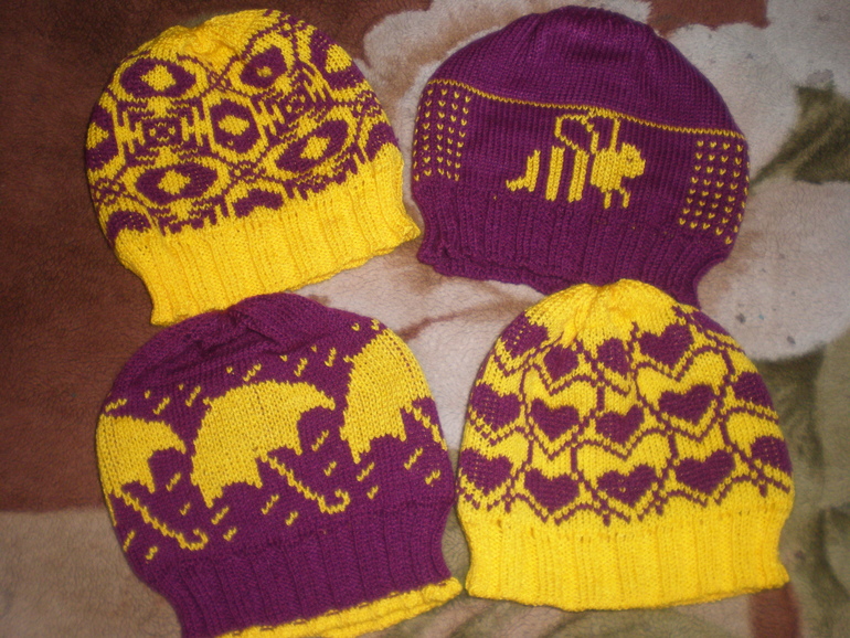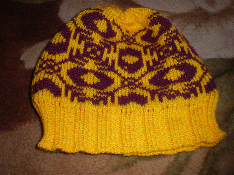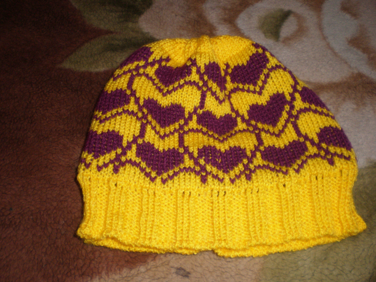 Спасибо.Делаю заработок на двух фонтурах,затем разбор игл под резинку 3*3 и вяжу ее,потом ДФЖ.После перевешиваю все петли с ПФ на ЗФ и вяжу еще несколько рядов.Далее делаю разбор игл что бы 1 игла была в РП а одна в ЗНП и вяжу 2-4 ряда,снимаю все петли на нитку (не обрываю нить которой вяжу) и затягиваю на макушке.Крючком или петлеуловителем "сшиваю" шов,так и красивее и не растягивается шов и хфостики прячутся.Вот и все,шапка такая вяжется примерно 20-30 минут не спеша.