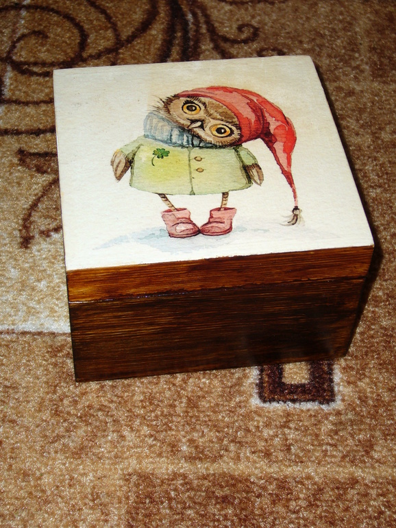 Далее,Танюша,подарила мне вот такую декупажную шкатулочку.Я даже знать не знала,ведать не ведала что стану ее обладательницей!!!Это очень приятный сюрприз!!! Это моя первая декупажная вещица,да еще и с совами,а совы ,как я успела заметить, сейчас рулят!!!)))Она очень классная,весь вечер ее крутила в руках,Димок у меня ее изъял и сказал,что это мое!!!Но я ему ее ни отдам ни за что... Вот такая я Жадина)))).