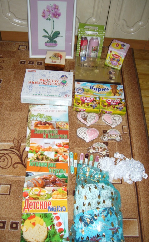 Я очень счастлива и очень удивлена сегодня!!! Ко мне сегодня зашла знакомая,и увидев все это спросила: "Это тебе родственница чтоли из другого города прислала?" А когда узнала что мы знакомы совсем недавно и только по интернету,была ошарашена и сказала что ТАКОГО НЕ БЫВАЕТ.
