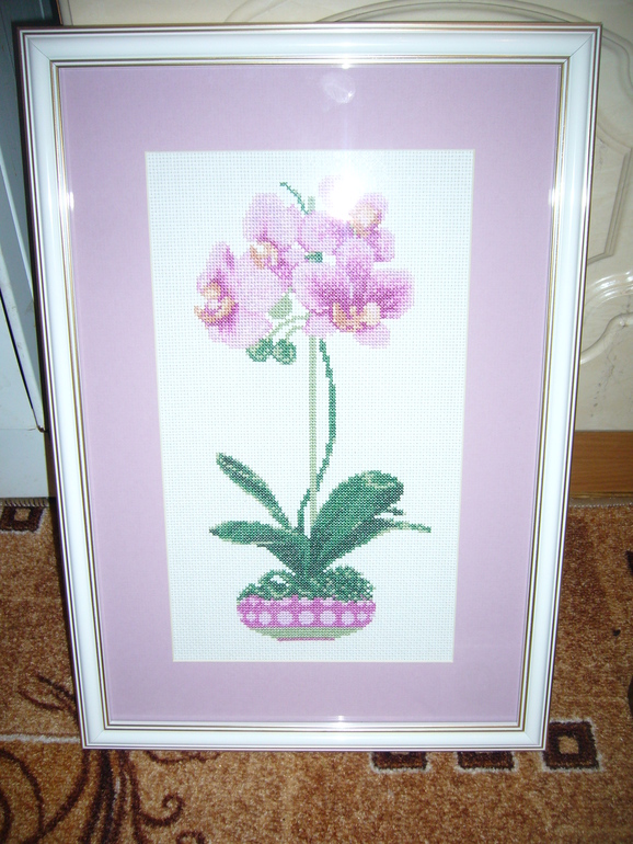 Итак,все по-порядку.Это, собственно говоря,и есть предмет нашего обмена.Орхидея, вышитая золотыми ручками Татьяны.Я от вышивки вообще тащусь,и от орхидей тоже)))Картина чудесная,и сразу с оформлением в багет.Спасибо!Спасибо!Спасибо! Теперь она моя!!! И я счастлива!!!