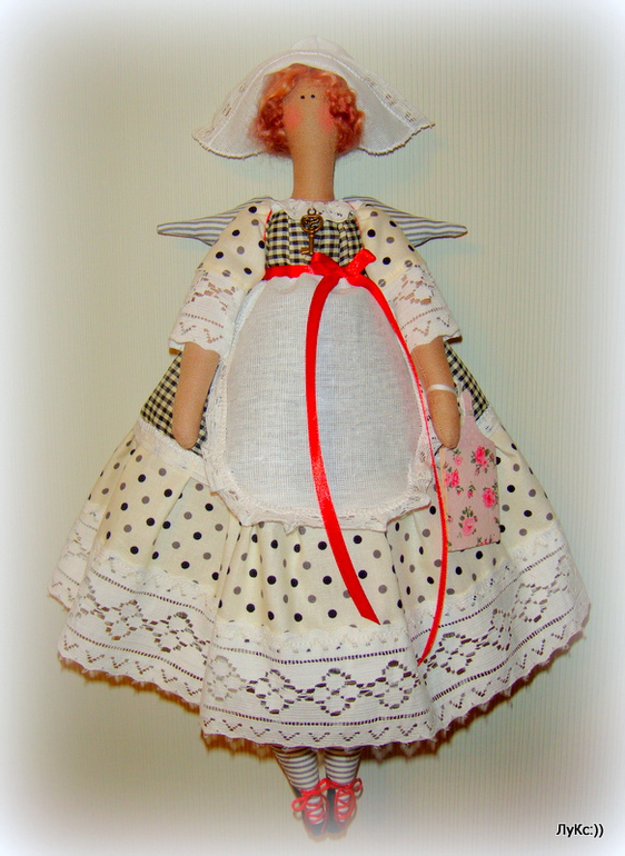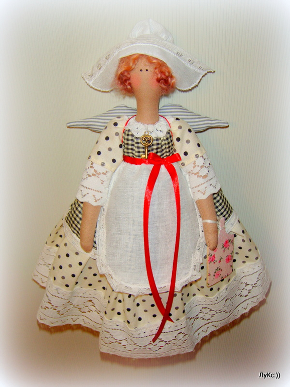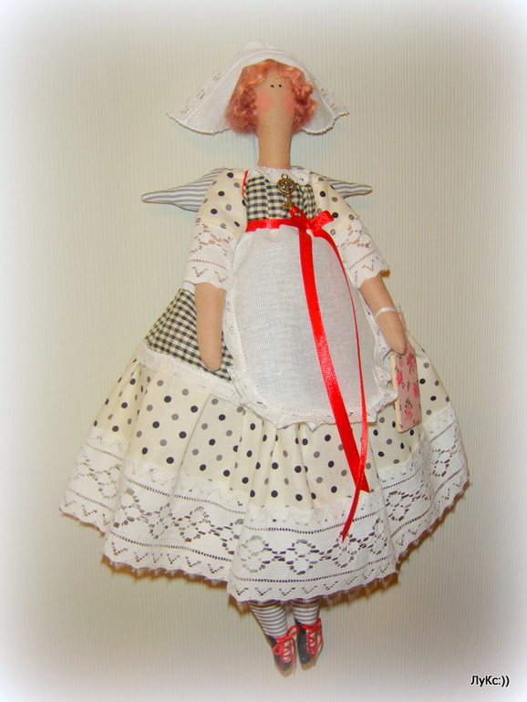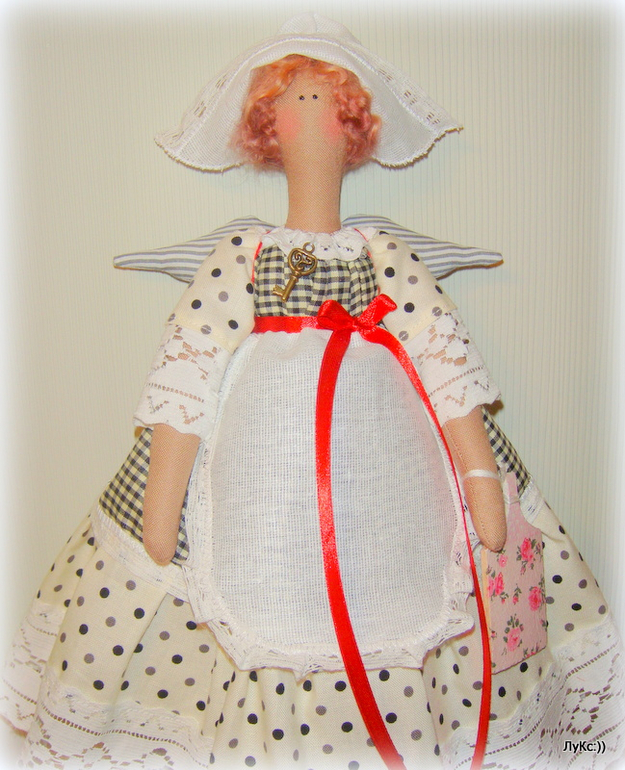 Срочным образом сшилась вот такая феечка, которая будет помогать хозяйке в готовке и следить за порядком на кухне) Деловитая и чопорная, но милая фрау Бригида)) Цветовая гамма продиктована интерьером кухни, где фея будет помогать хозяйке)