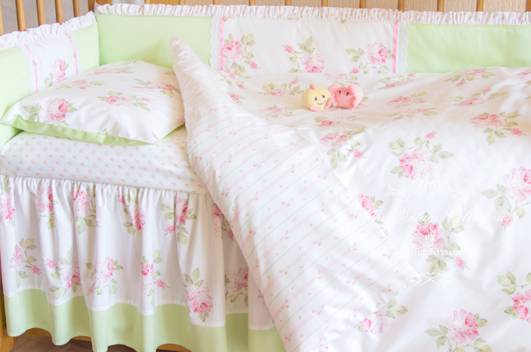 Шитье одежды, выкройки, ремонт одежды, шторы, швейные машины (уже приобретенные)Нежная и изысканная постель для маленькой принцессы уехала вчера в Москву. В этот раз, для завершения композиции, комплект я дополнила юбкой-подзором. По моему, хорошо получилось. =) Как Вам?