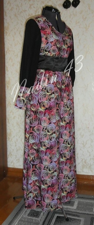 Это платье из штапеля с добавлением атласа (на пояс)и шифона на рукава (на заказ)