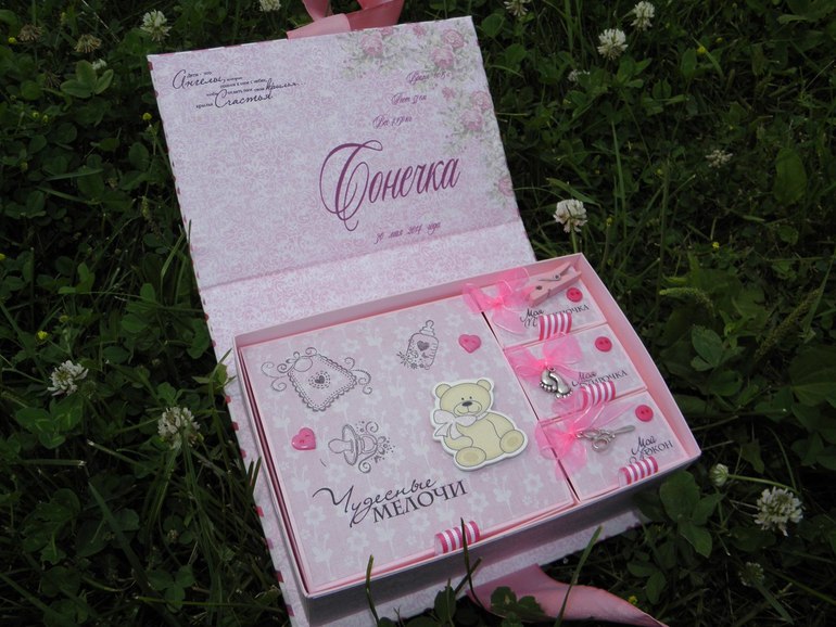 очень профессионально сделано,Вы просто молодец!меня с недавних пор тоже скрап увлек.в коротких перерывах между заказами отдыхаю))можно задать вам несколько вопросов?на какой клей приклеиваются все штучки,например,ленточки,цветочки,подвески?где можно вязать заготовки под коробочку?из чего они вообще?(я хочу своим деткам тоже сделать),а еще хочу сделать альбом,и не знаю,где взять развороты((главное,обложки есть-заготовки,кольца есть,а разворотов нет.