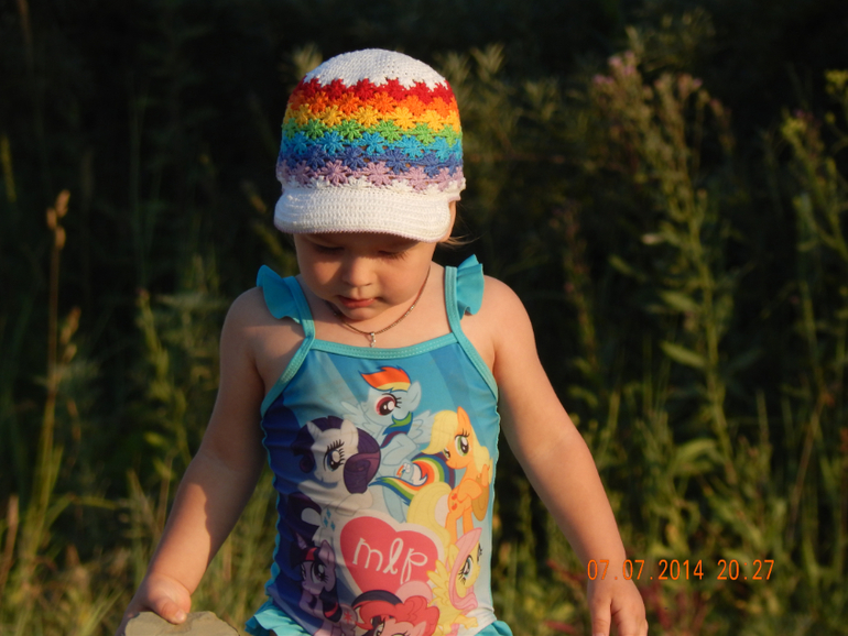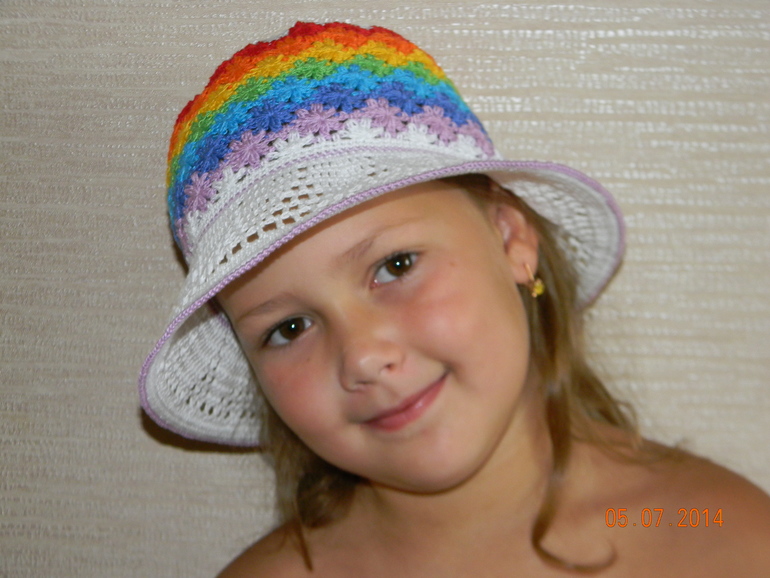 Для дочки младшей попрактичнее - в виде кепки, носим не снимая:
