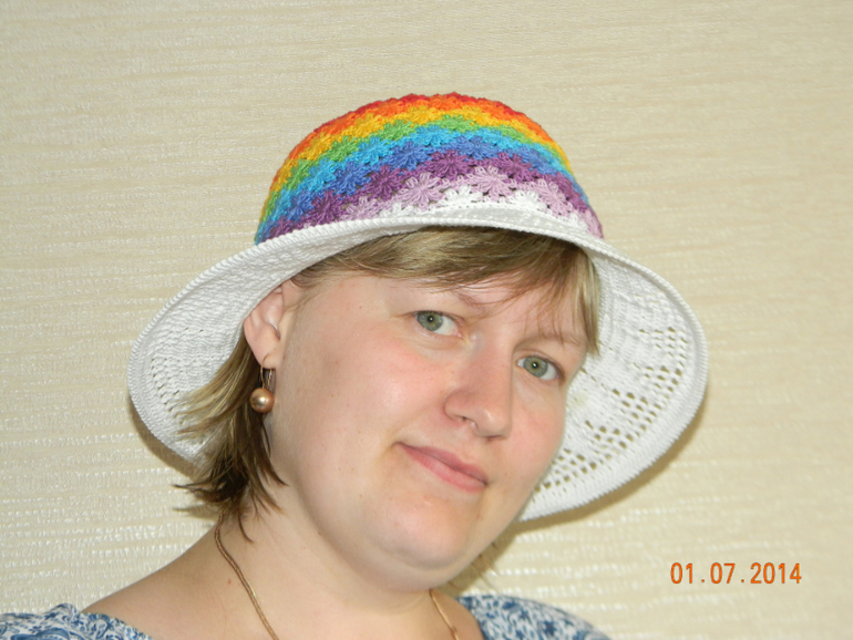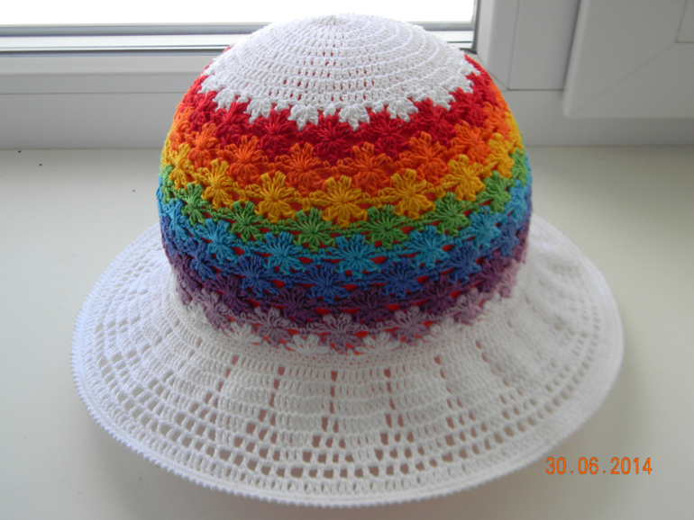 Поддалась и я общему ажиотажу вокруг шляпок-шапочек с красивым названием "Perenni-многолетники". Из всех вариантов больше всего запала в душу радужная расцветка. Вот что натворилось: