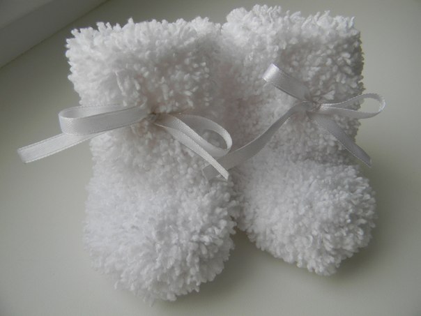 На мой взгляд, здесь самая простая схема. Просто из таких ниток вязание должно тянутся, и они как сапожечки без шнурков и пуговиц. Ну вот здесь похоже http://cluclu.ru/blog/deti_vyazanie/185.html