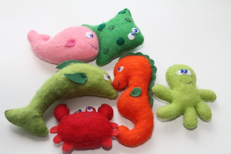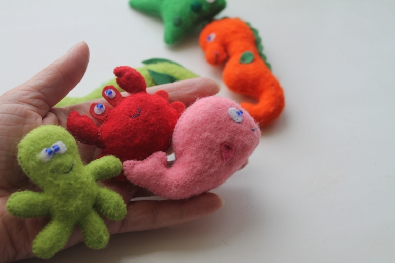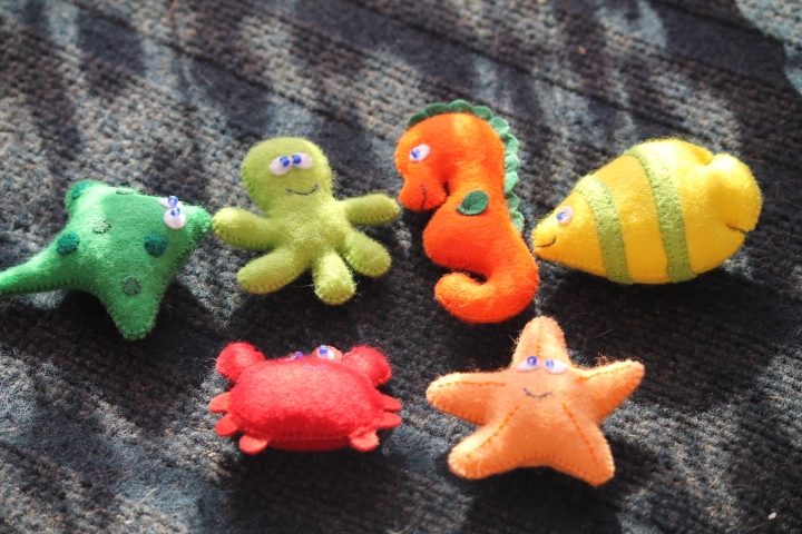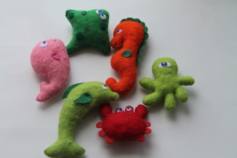 Следующим в моем «списке» был морской зоопарк его я шила с особым удовольствием, подсмотрев в сообществе и каждая фигурка для меня было что-то. Хотелось все за один час сшить, ан нет, все-таки процесс трудоемкий) Краб, морская звезда, скат, рыбка, кит, морской конек, дельфин, черепашка, медуза, осьминог, много красоты получилось много