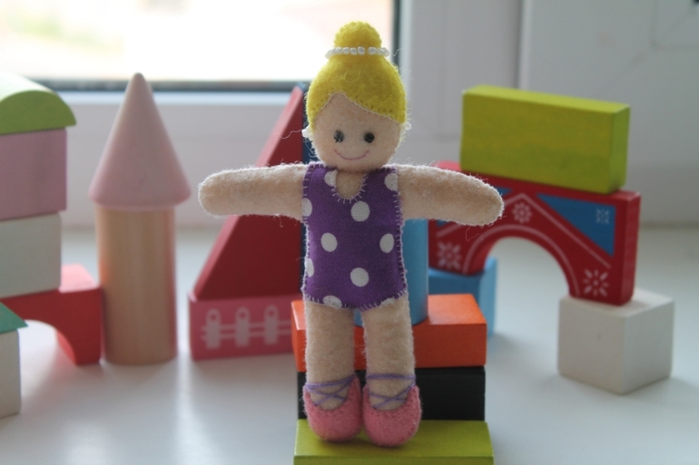 Потом я открыла сайт одной мастерицы и была поражена, какая она молодчинка! Мне так понравились ее игрушки, я тут же нарисовала и сшила балеринку. У нее была такая очаровательная пачка, ммм. Жаль, но доча равнодушна, по большей части, к куклам и балеринкой играла мало, только снимала и одевала юбочку, пока не потеряла. Кошке же она понравилась ооочень, еле выдрала.