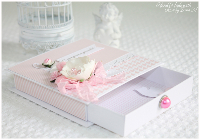 СкрапбукингКоробочка была сделана по вдохновению. После использования по назначению (дарения денег), можно использовать для хранения милых сердцу мамы вещиц. Например,тестиков, локона, бирочек из РД и т.д.