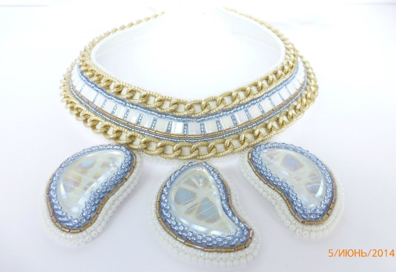 Закончила очередное колье в технике вышивки бисером. Использовала японский бисер, чешское стекло.