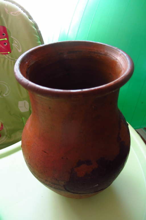 Внутри можно попробовать налить краски и покрутить кувшин . Хотя мне кажется, что внутри не принципиально красить, особенно если планируется ставить в неё живые цветы. Снаружи нужно выровнять поверхность. Сначала затереть сильные вмятины алебастром, разведённым с клеем ПВА и водой (или фактурной штукатуркой). Потом поверхность отшкурить. Потом красить белой краской (грунт) а потом уже декупажить.
