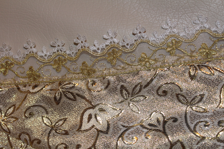 Также сшилась у меня коротёна - такая "юбочка" из клиньев, которая одевается чаще как средство утепления, ну а у нас как украшение костюма, из парчи.