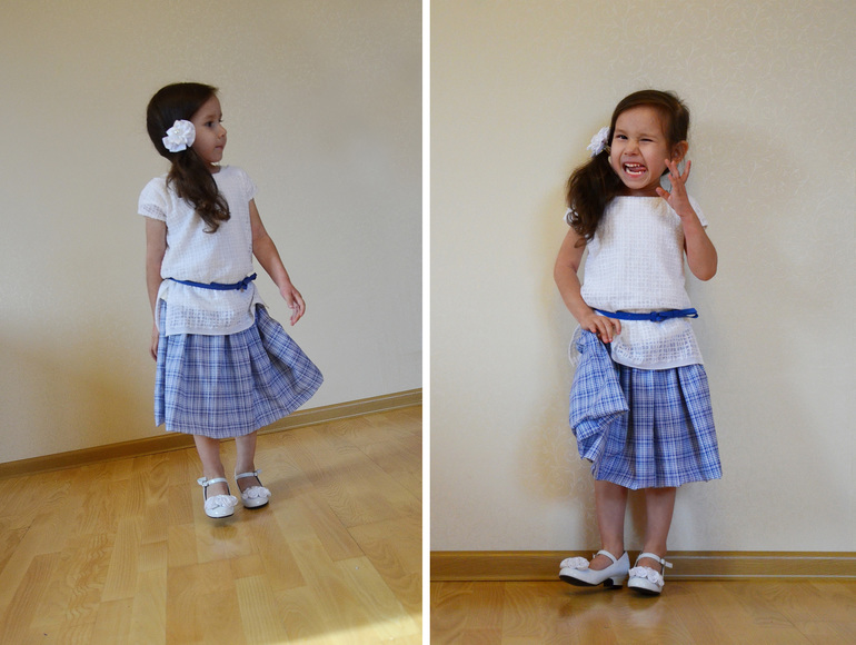 Юбка из рубашки — это просто великолепно. И задумка и исполнение. А лучше всех модель. Очаровательная девочка.