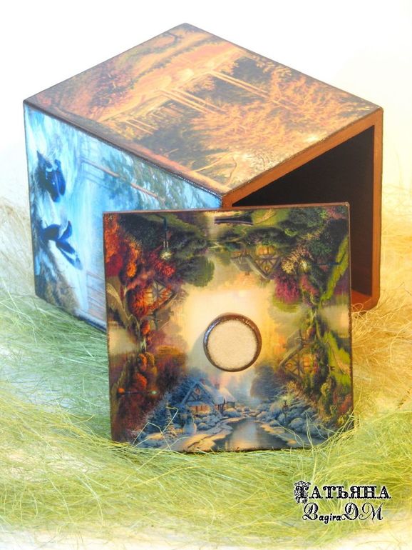 ДекупажКоробочка "Времена года"...Долгая история у этой коробочки) Началась она с картинки на крышке) Уж очень она мне понравилась, прям навязчивая идея появилась сделать коробочку с такой картинкой) Пришлось искать заготовку, подбирать подходящие мотивы и...вуа-ля! Еще на знаю, что буду в нее складывать, знаю только, что жить она будет в моей мастерской на столе)