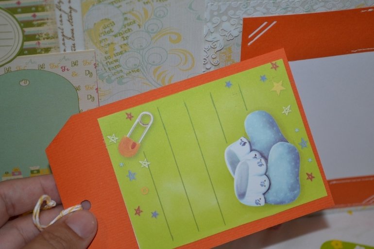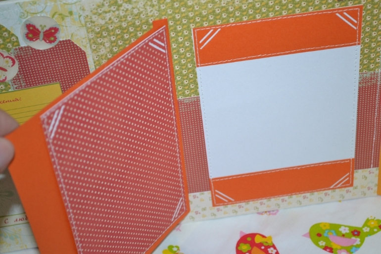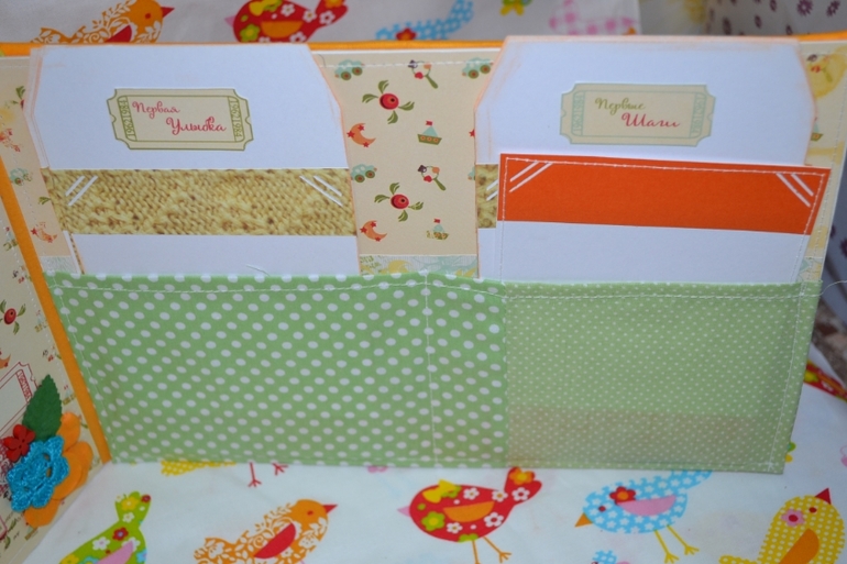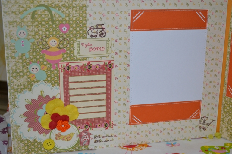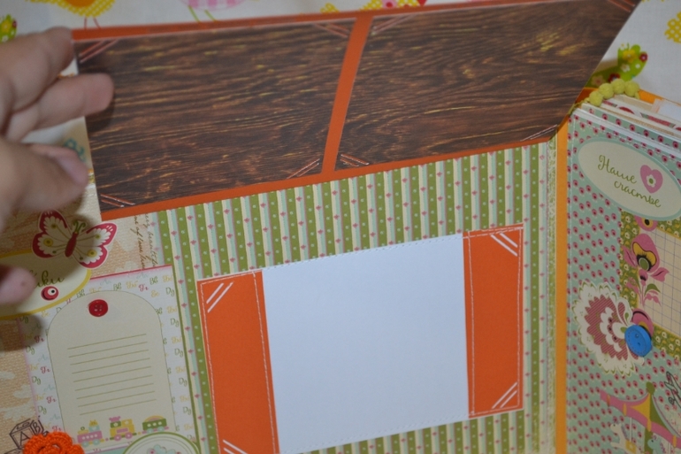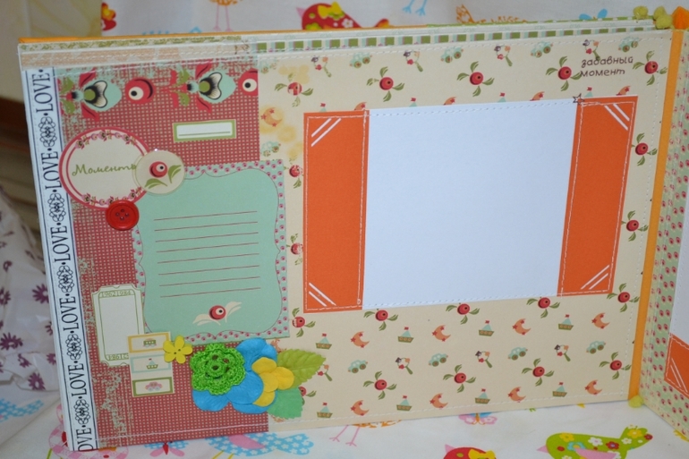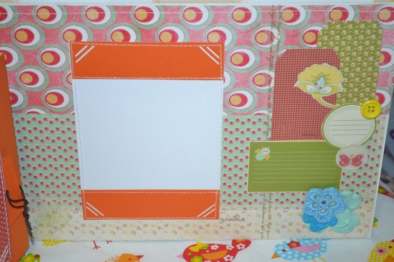в альбом 12 страничек,место для фото,развороты,еще есть секретики и карточки на последней страничке!