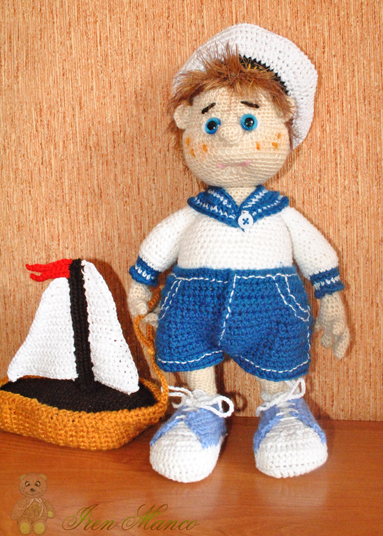 Спасибо, Юля!Да такой морячок отлично впишется в морскую детскую)))) Вязала неделю примерно и то, потому, что вяжу сразу несколько вещей))) По морячку есть на magicland.su онлайн платный.