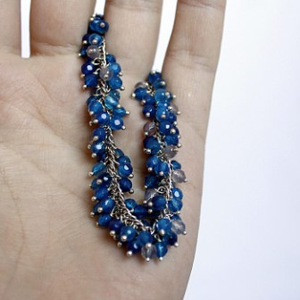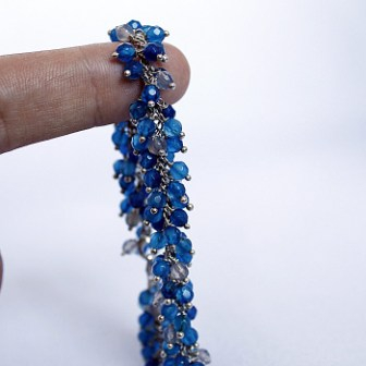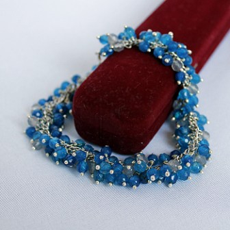 Водопад из синих агатов, в чьих гранях таится отблеск света, как в каплях падающей воды, завораживает и притягивает взгляд. Камушки, подобно живым, перетекают, шуршат и качаются от малейшего прикосновения, как только берешь браслет в руки.