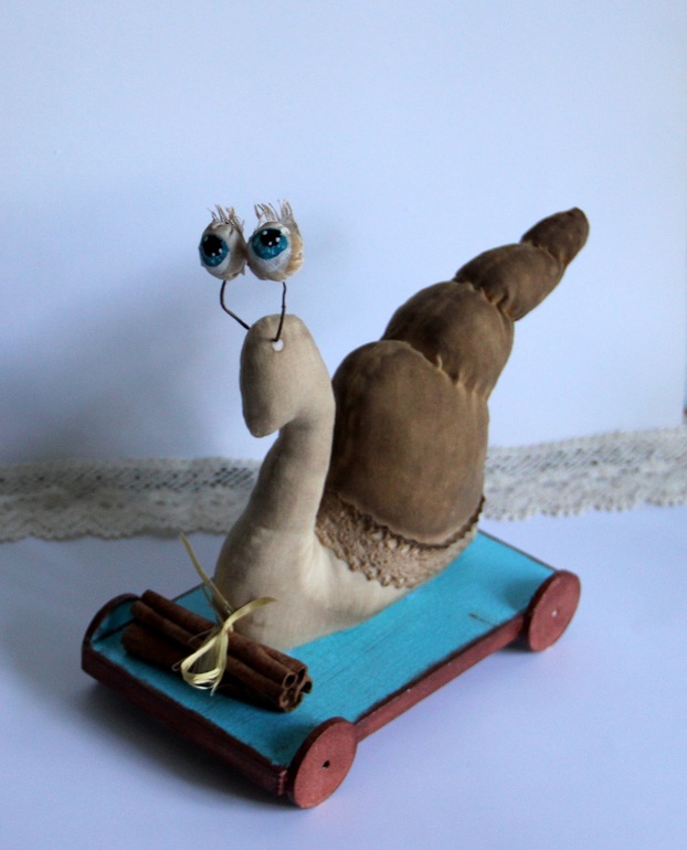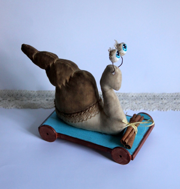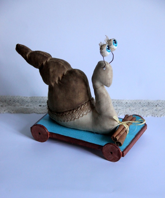 Игрушечный мир - животныеДля одной улитколюбивой подруги сшилась эта чердачная малышка. Улитка с глазами-перископами, так назывался МК. Или улиточка на скейте - скоростной моллюск...