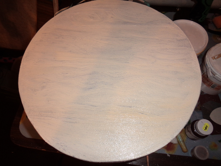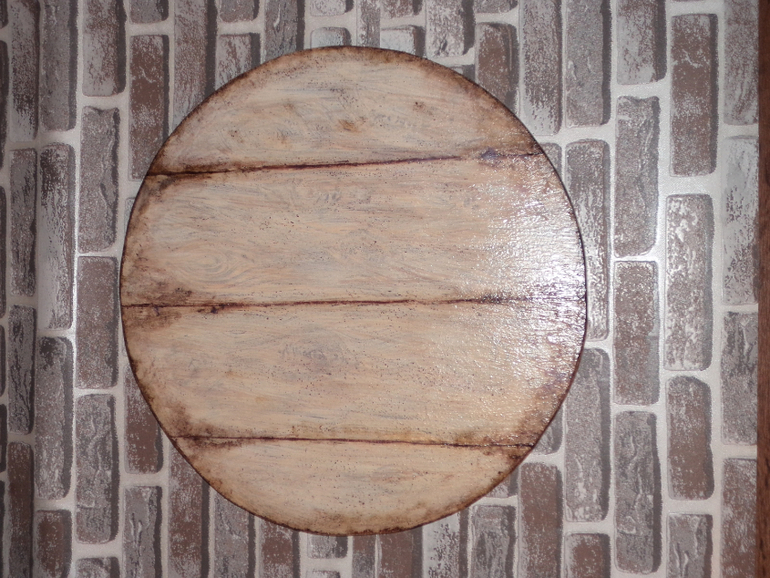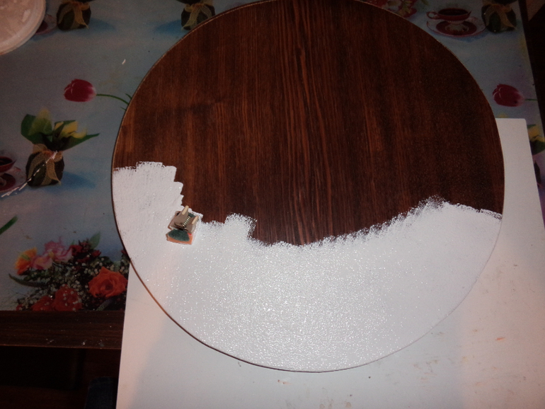 1. Заготовку шкурить изначально не пришлось, так как она была от мебели и с лицевой стороны отработана. Да и в случае имитации старины, я думаю неровности будут плюсом. Сразу покрыла грунтом.