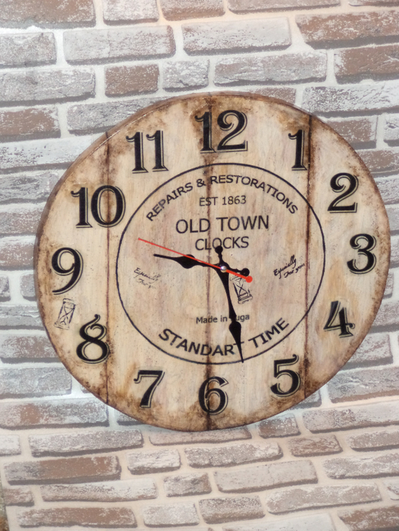 Вот она моя "изюминка". Диаметр часов 40 см. Сделаны из массивной доски (стенка от шкафа солидная такая 16 мм не меньше)