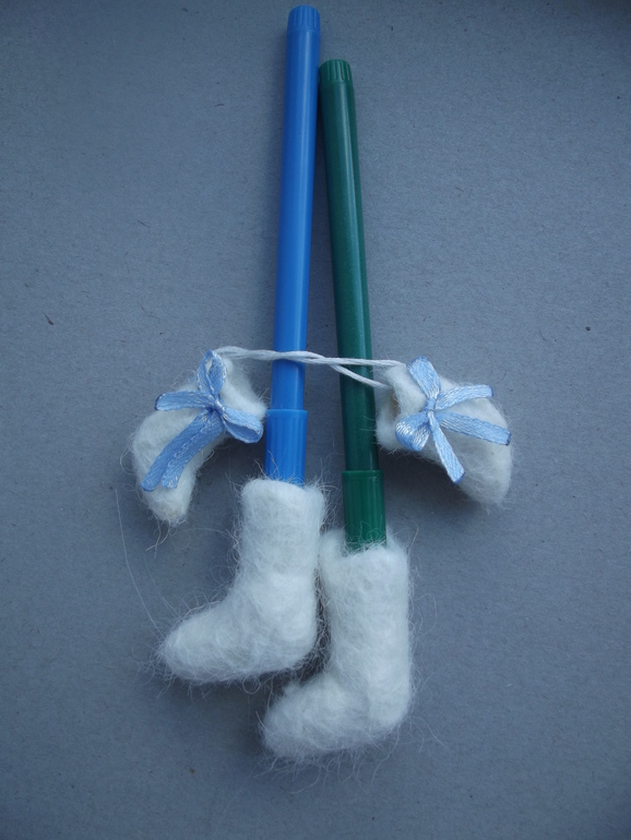 Фелтинг (валяние шерсти)Сделала куколку, которой нужна зимняя обувка... с размером не расчитала, пришлось делать две пары, сохнут...