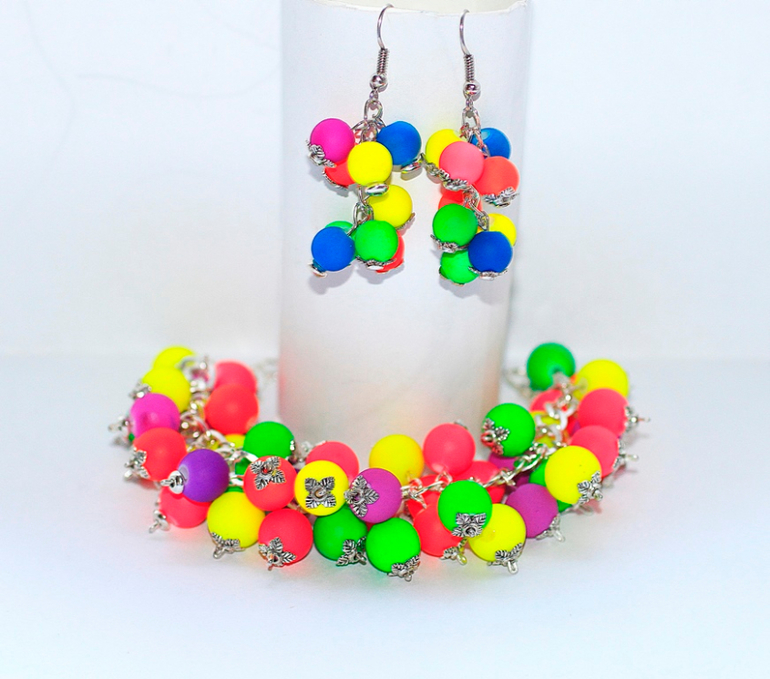 Яркий,летний браслет "шуршалочка"из акриловых бусин