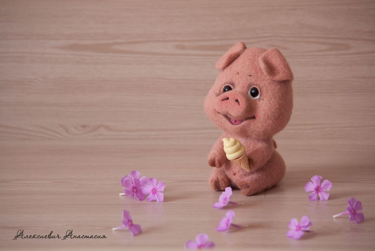 Фелтинг (валяние шерсти)Чуня большущий сладкоежка и не расстается с любимым мороженным ни на минутку.